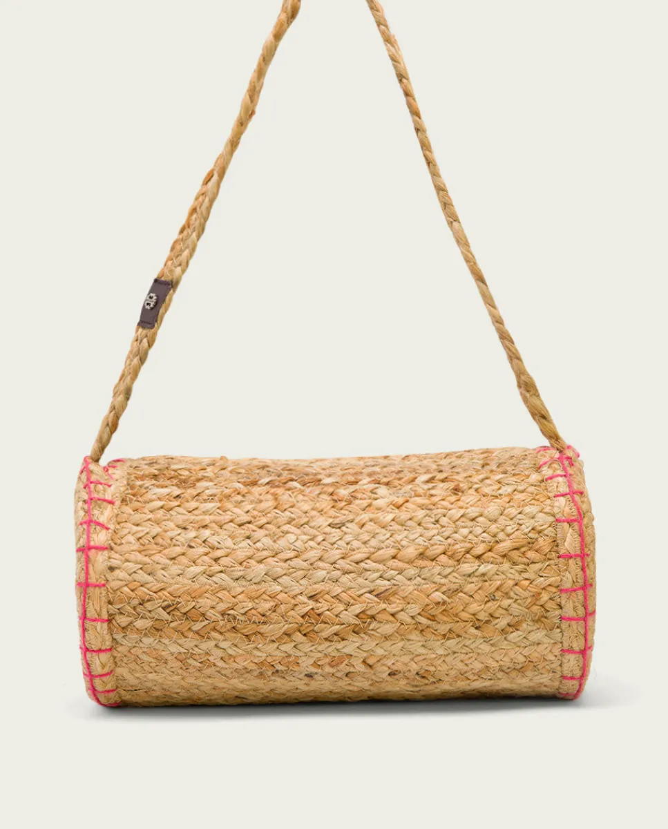 Bolso Estilo Bandolera Con Solapa, Confeccionado En Yute Natural Con Detalle De Cosido A Mano. Interior Textil Con Bolsillo Y Cierre Con Cremallera.