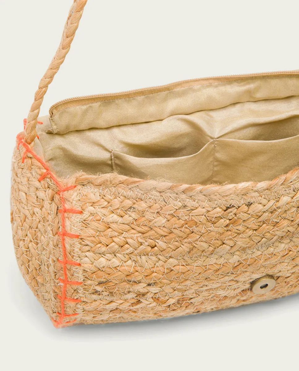 Bolso Estilo Bandolera Con Solapa, Confeccionado En Yute Natural Con Detalle De Cosido A Mano. Interior Textil Con Bolsillo Y Cierre Con Cremallera.