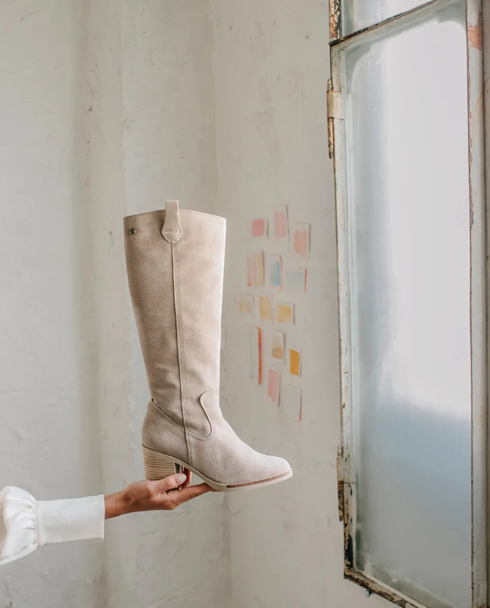 Botas De Serraje Con Tacón De 6,5 Cm Y Altura De Cana De 36 Cm. Cremallera Lateral Interior Para Facilitar El Calce. Plantilla Y Forro De Microfibra Con Acabado Confort Aterciopelado. Elaborado 100% En Espana.