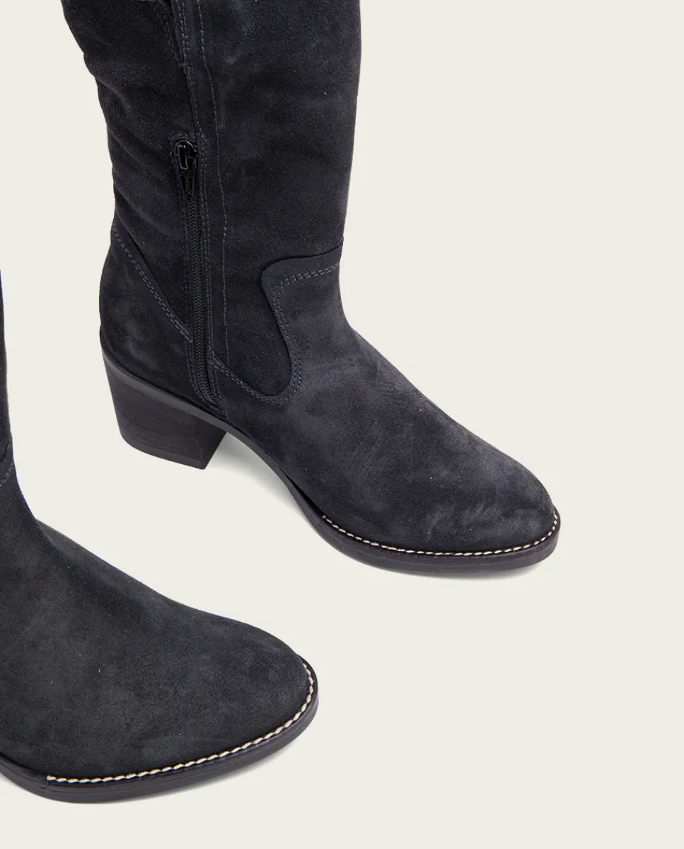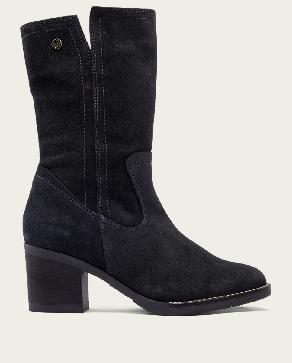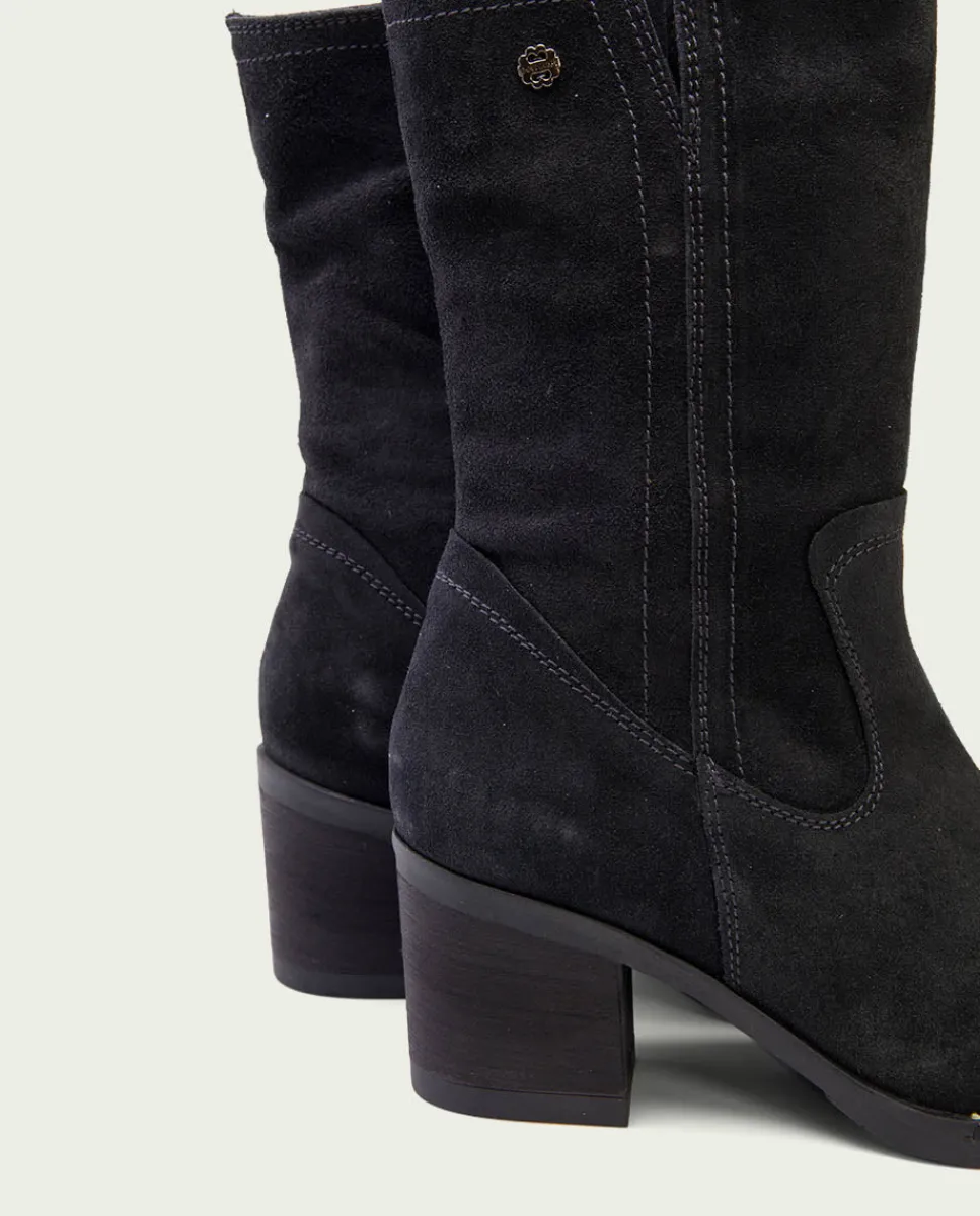 Botas De Serraje Con Tacón De 6,5 Cm Y Altura De Cana De 21 Cm. Corte Superior En V Y Cremallera Lateral Interior Para Facilitar El Calce. Plantilla Y Forro De Microfibra Con Acabado Confort Aterciopelado. Elaborado 100% En Espana.