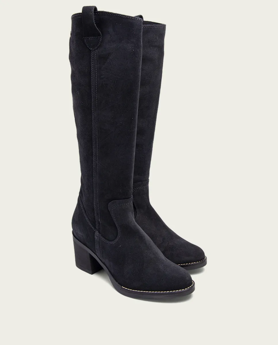 Botas De Serraje Con Tacón De 6,5 Cm Y Altura De Cana De 36 Cm. Cremallera Lateral Interior Para Facilitar El Calce. Plantilla Y Forro De Microfibra Con Acabado Confort Aterciopelado. Elaborado 100% En Espana.