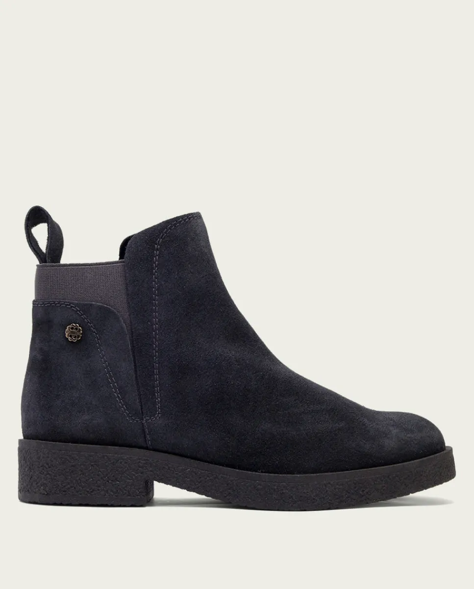 Botines De Serraje Con Suela De Crepe Natural Y Altura De Tacón De 3,5 Cm. Aperturas Laterales Con Elasticos Para Facilitar El Calce. Corte De Piel, Forro Y Plantilla De Microfibra Confort Aterciopelada. Elaborado 100% En Espana.