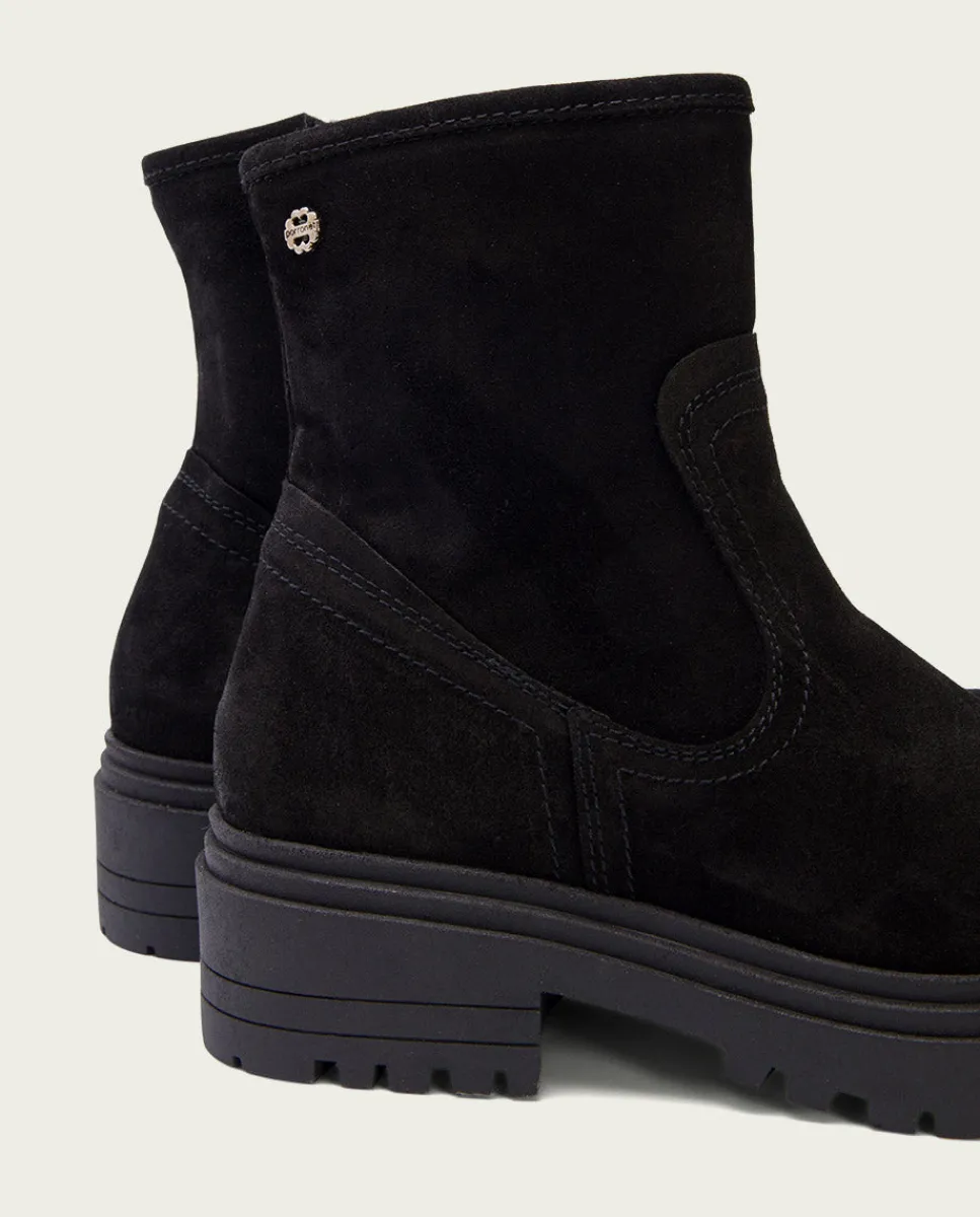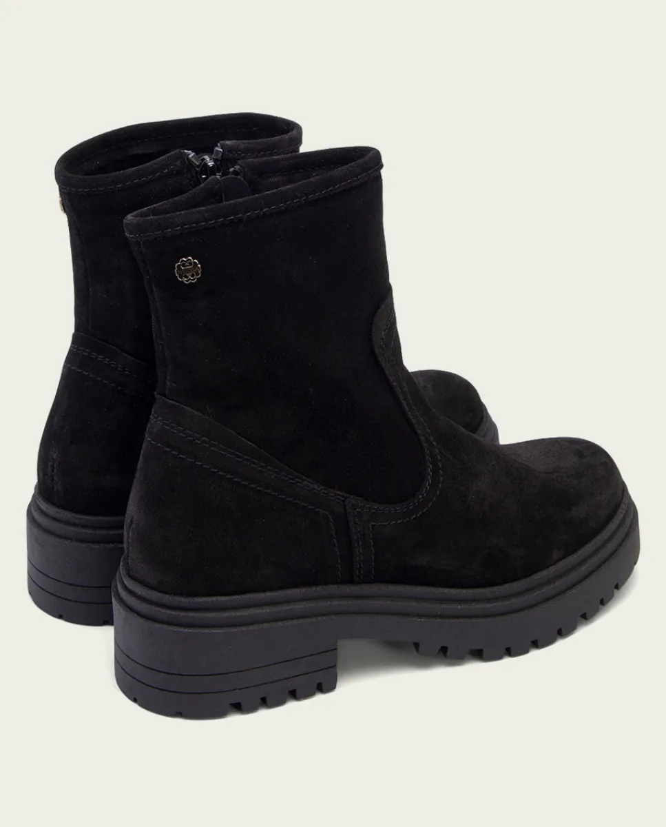 Botines De Serraje Con Cierre Con Cremallera Para Facilitar El Calce Y Altura De Tacón De 5 Cm. Plantilla Y Forro De Microfibra Con Acabado Confort Aterciopelado. Piso Antideslizante Y Flexible. Elaborados 100% En Espana.
