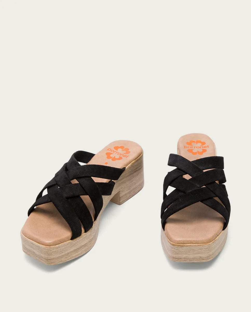 Sandalia Con Pala Formada Por Tiras De Serraje Cruzadas. Plantilla Acolchada De Piel Que Garantiza Una Gran Comodidad. Piso De Tacón Con Acabado En Madera De 6 Cm Y Plataforma De 3 Cm. Fabricado Artesanalmente En Espana.