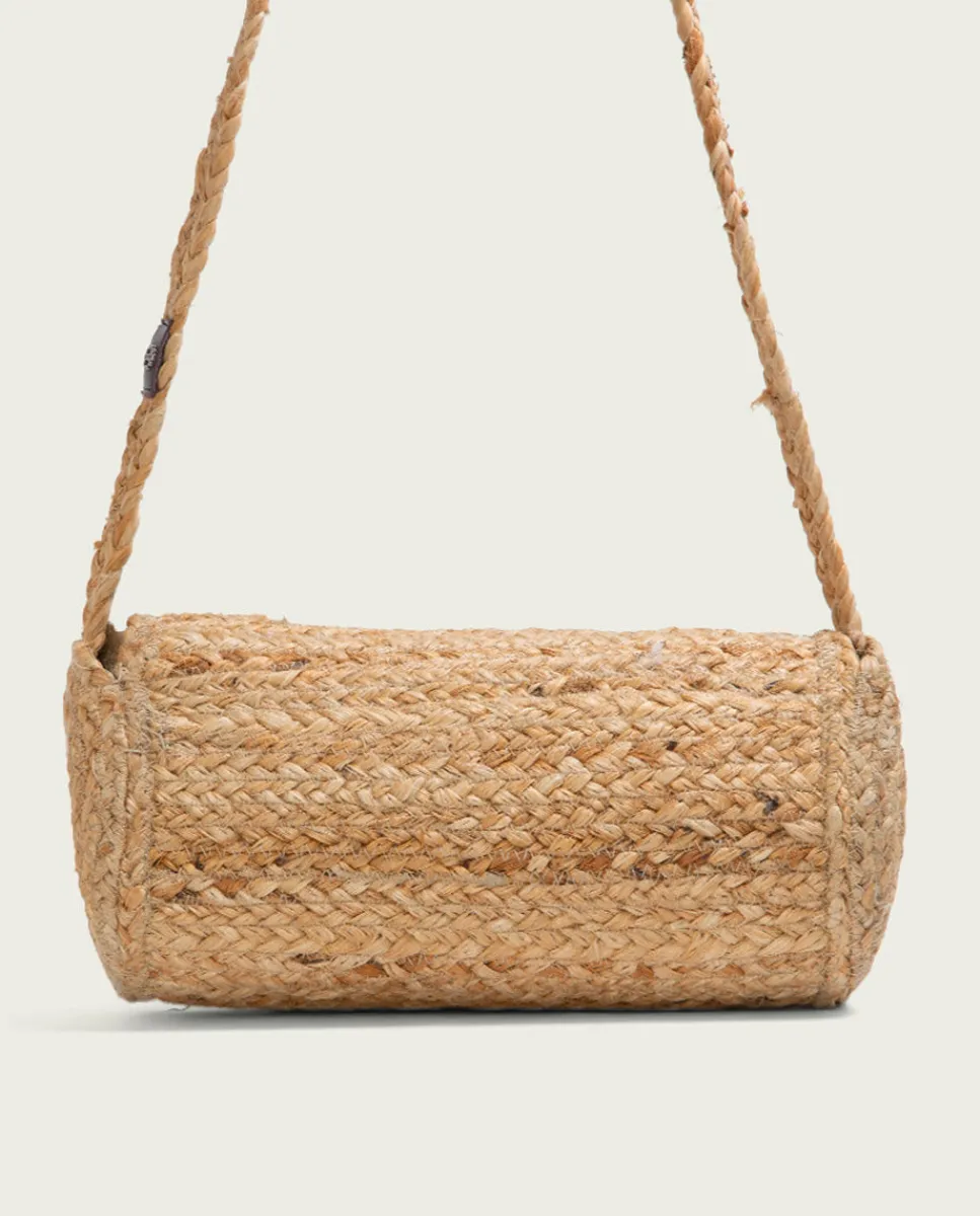 Bolso Estilo Bandolera Con Solapa, Confeccionado En Yute Natural. Interior Textil Con Bolsillo Y Cierre Con Cremallera.