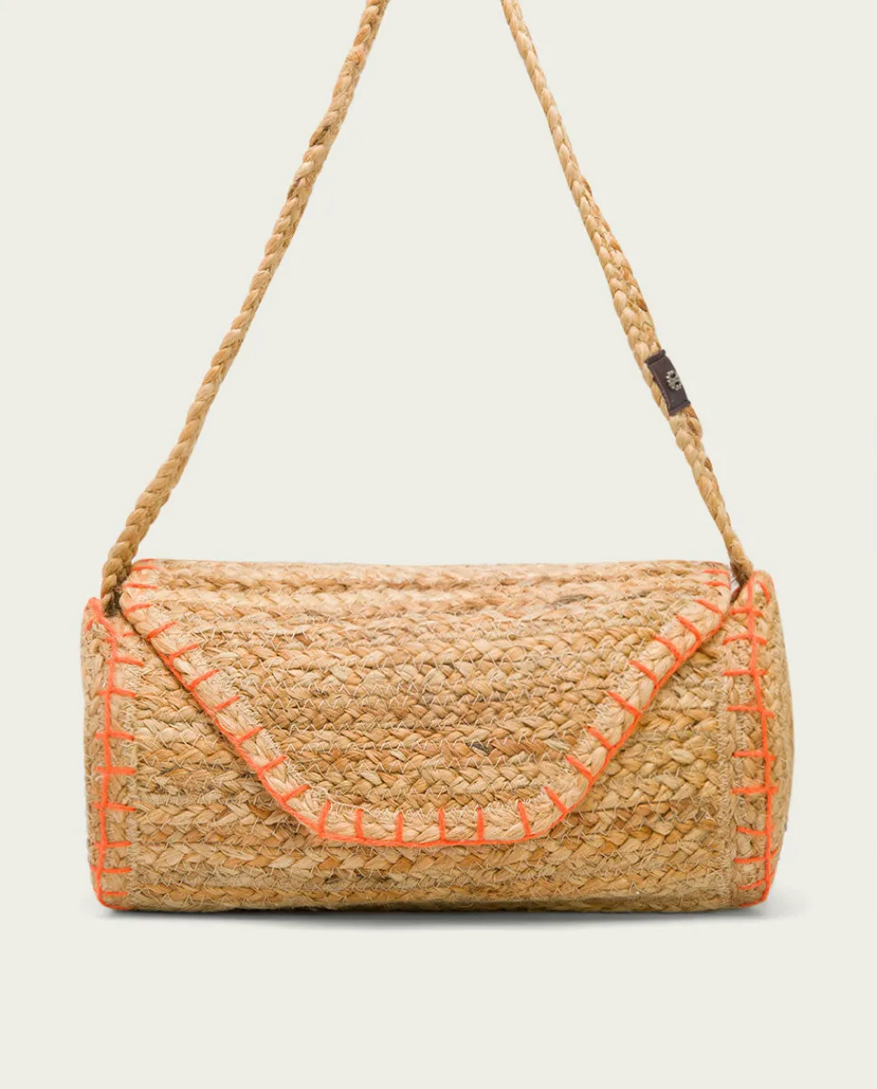 Bolso Estilo Bandolera Con Solapa, Confeccionado En Yute Natural Con Detalle De Cosido A Mano. Interior Textil Con Bolsillo Y Cierre Con Cremallera.