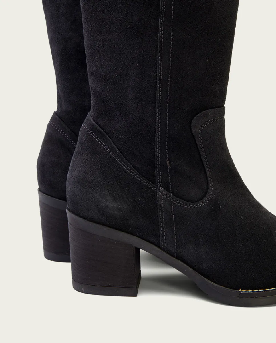 Botas De Serraje Con Tacón De 6,5 Cm Y Altura De Cana De 36 Cm. Cremallera Lateral Interior Para Facilitar El Calce. Plantilla Y Forro De Microfibra Con Acabado Confort Aterciopelado. Elaborado 100% En Espana.