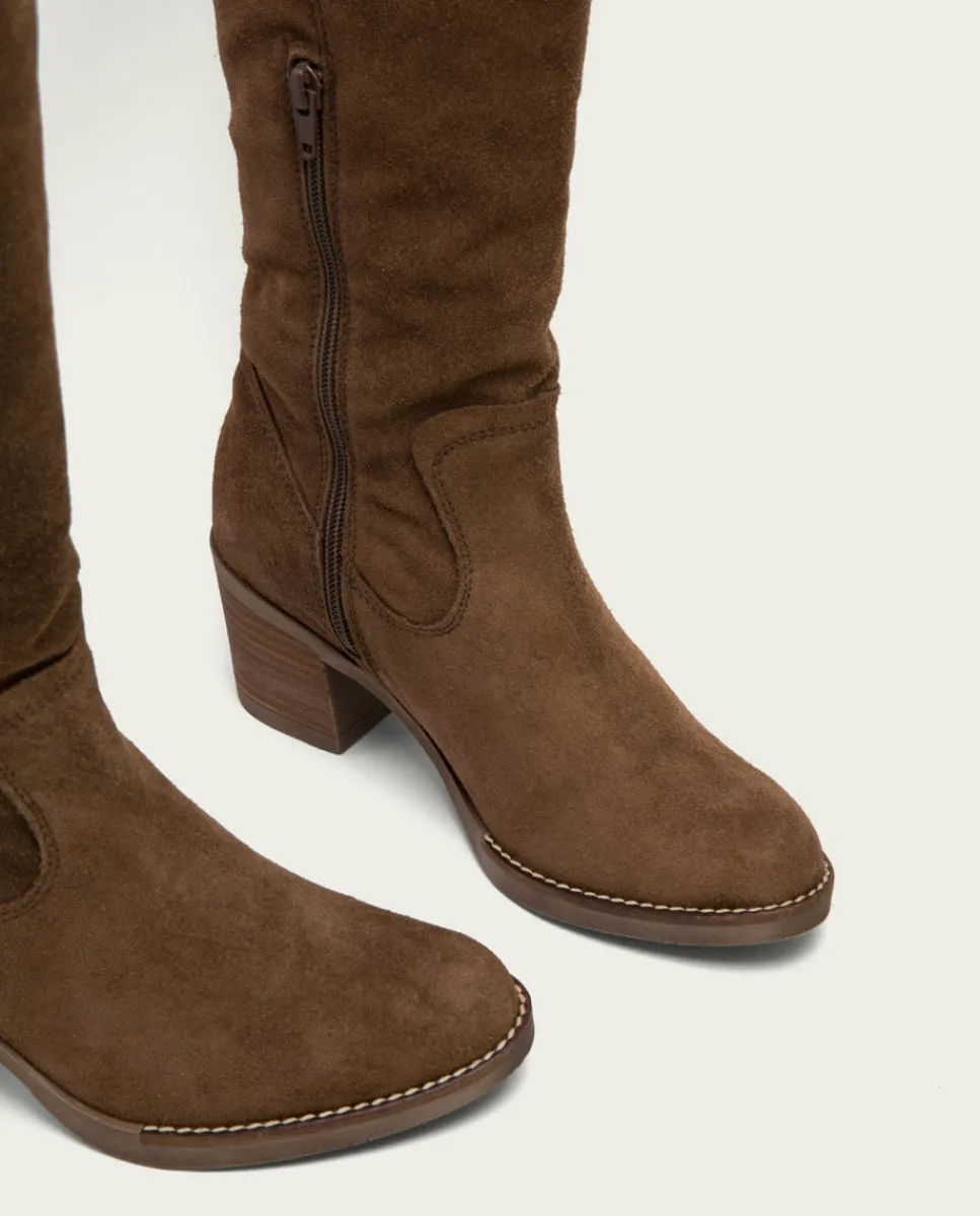 Botas De Serraje Con Tacón De 6,5 Cm Y Altura De Cana De 36 Cm. Cremallera Lateral Interior Para Facilitar El Calce. Plantilla Y Forro De Microfibra Con Acabado Confort Aterciopelado. Elaborado 100% En Espana.