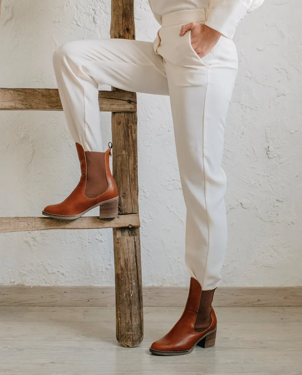 Botines En Piel Con Tacón De 6,5 Cm. Elasticos Laterales Estilo ‘Chelsea’ Y Detalle De Tirador En La Parte Trasera Para Facilitar El Calce. Plantilla Y Forro De Microfibra Con Acabado Confort Aterciopelado. Elaborado 100% En Espana.