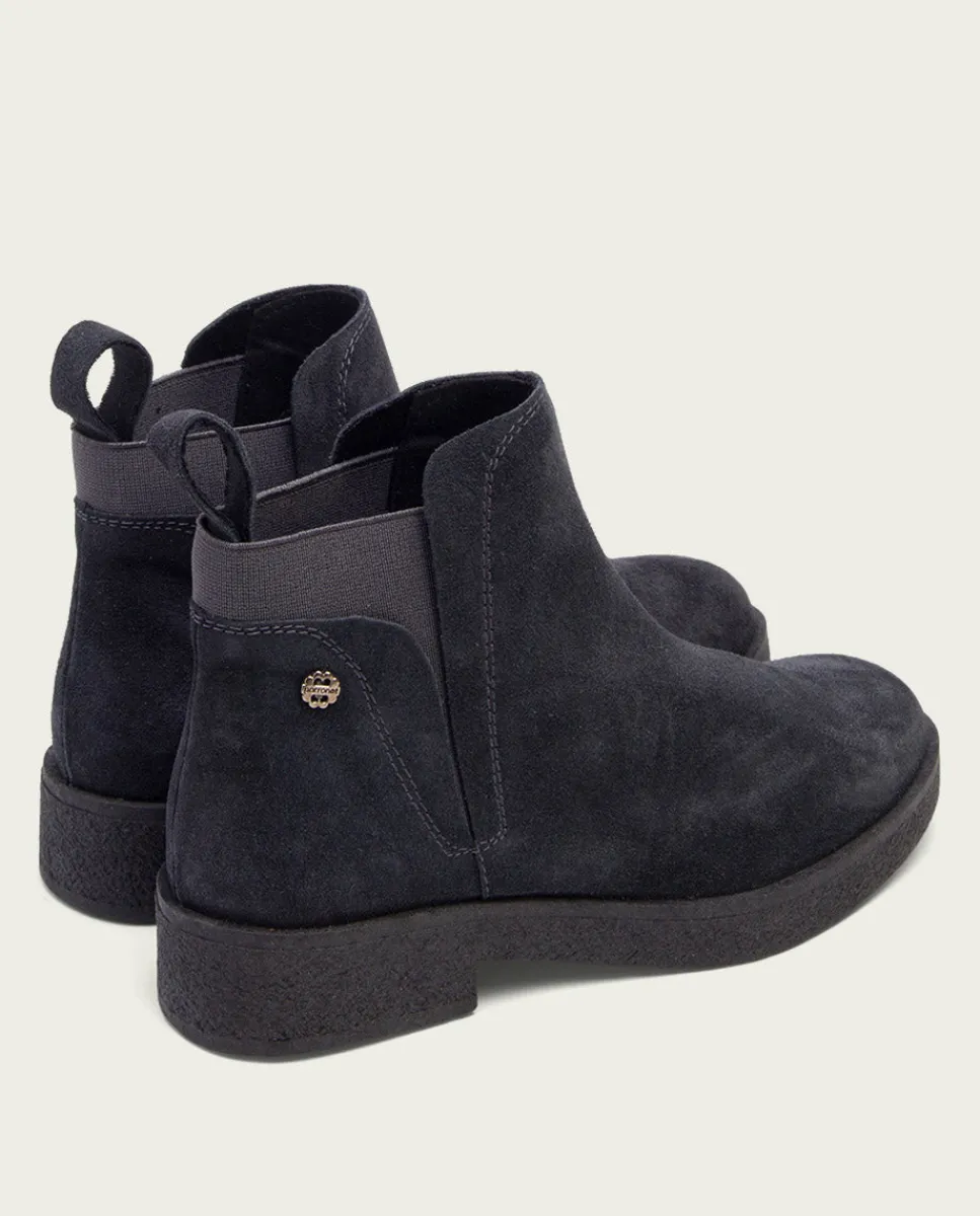 Botines De Serraje Con Suela De Crepe Natural Y Altura De Tacón De 3,5 Cm. Aperturas Laterales Con Elasticos Para Facilitar El Calce. Corte De Piel, Forro Y Plantilla De Microfibra Confort Aterciopelada. Elaborado 100% En Espana.