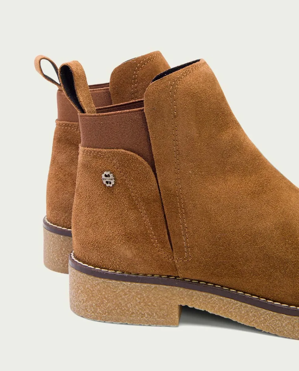 Botines De Serraje Con Suela De Crepe Natural Y Altura De Tacón De 3,5 Cm. Aperturas Laterales Con Elasticos Para Facilitar El Calce. Corte De Piel, Forro Y Plantilla De Microfibra Confort Aterciopelada. Elaborado 100% En Espana.