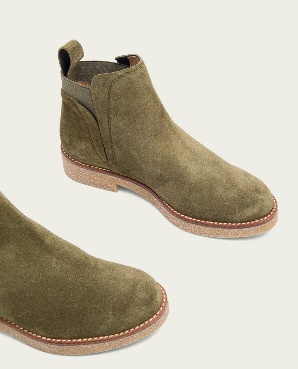 Botines De Serraje Con Suela De Crepe Natural Y Altura De Tacón De 3,5 Cm. Aperturas Laterales Con Elasticos Para Facilitar El Calce. Corte De Piel, Forro Y Plantilla De Microfibra Confort Aterciopelada. Elaborado 100% En Espana.