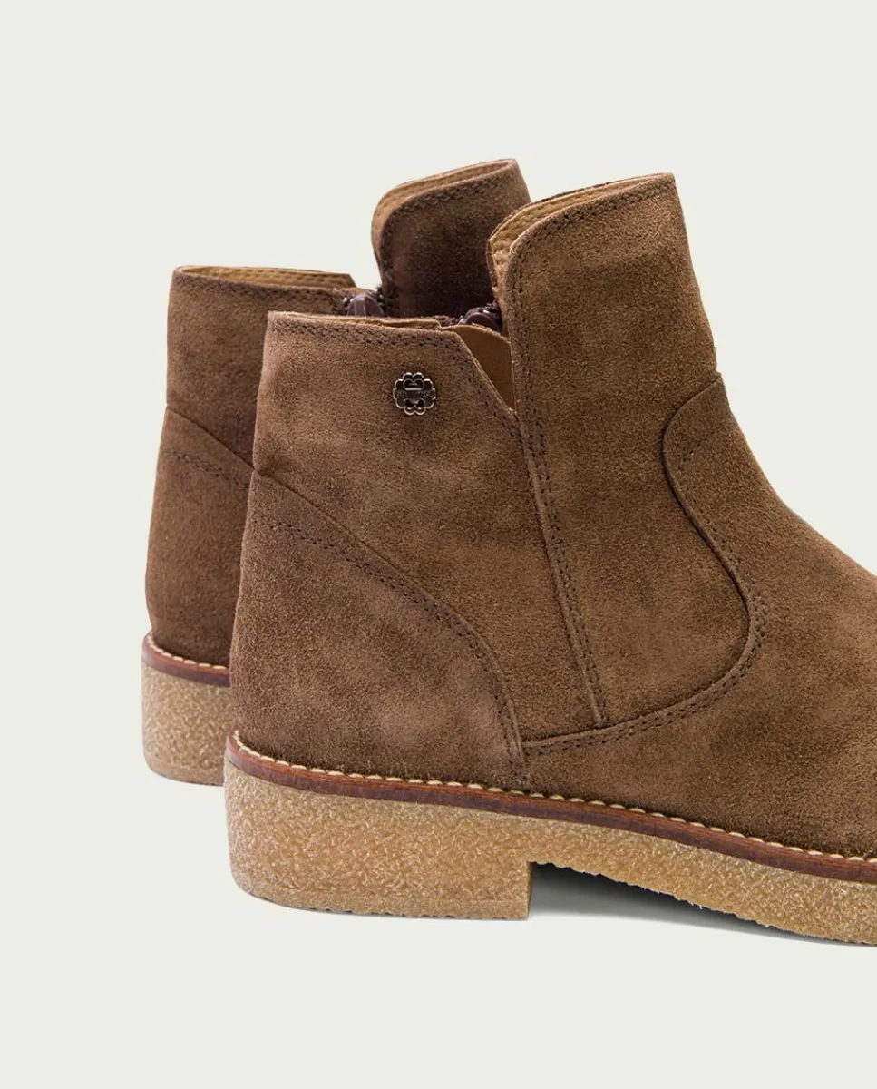 Botines De Serraje Con Suela De Crepe Natural Y Altura De Tacón De 3,5 Cm. Apertura Interior Con Cremallera Para Facilitar El Calce. Corte De Piel, Forro Y Plantilla De Microfibra Confort Aterciopelada. Elaborado 100% En Espana.