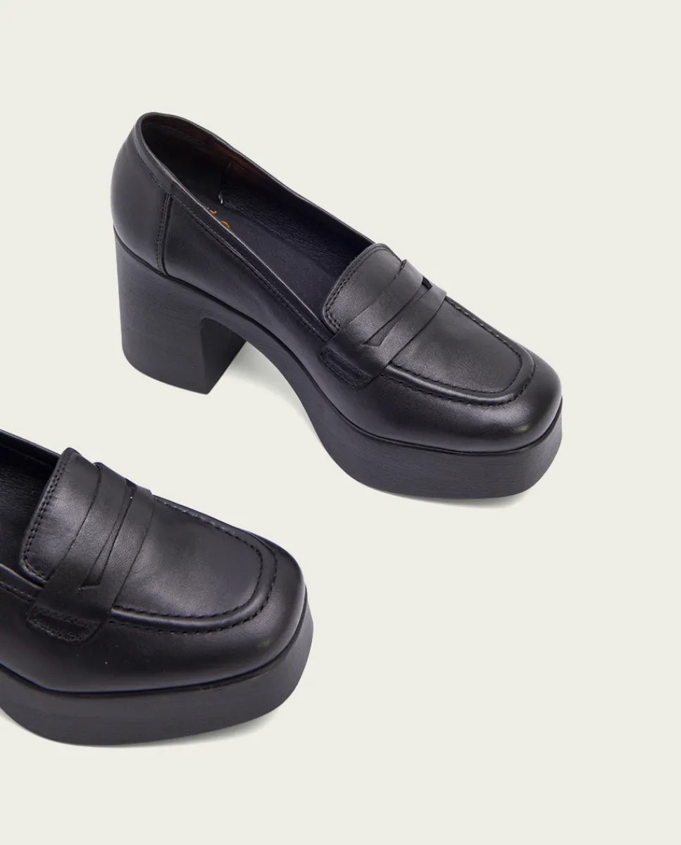 Mocasines De Piel Con Tacón De 8,5 Cm Y Plataforma De 2,5 Cm. Corte De Piel, Plantilla Y Forro De Microfibra Con Acabado Confort. Piso Antideslizante Y Flexible. Elaborado 100% En Espana.