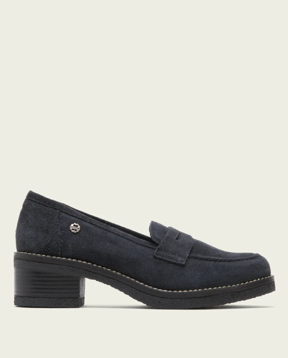 Mocasines De Serraje Con Tacón De 5 Cm Y Plataforma De 2 Cm. Corte De Serraje, Plantilla Y Forro De Microfibra Con Acabado Confort. Piso Antideslizante Y Flexible. Elaborado 100% En Espana.