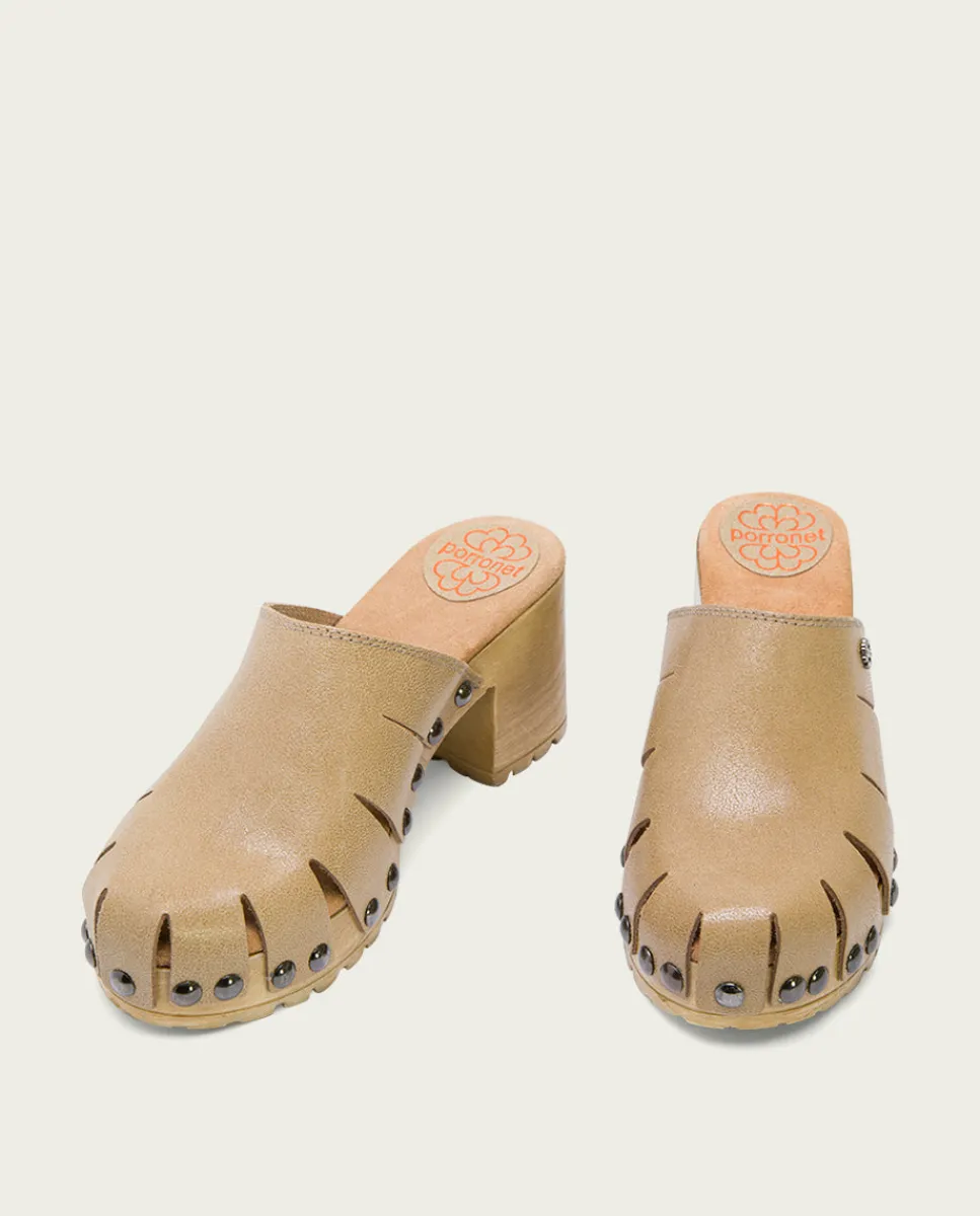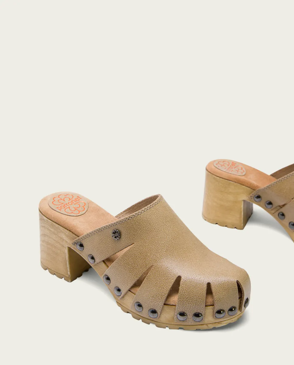 Sandalias De Tacón De Serraje Laminado Tipo Zueco Con Pala Troquelada. Piso De Tacón Ancho De 7 Cm Y Plataforma De 3 Cm Con Acabado De Madera. Plantilla Acolchada De Serraje Que Garantiza Una Gran Comodidad. Fabricado En Espana.